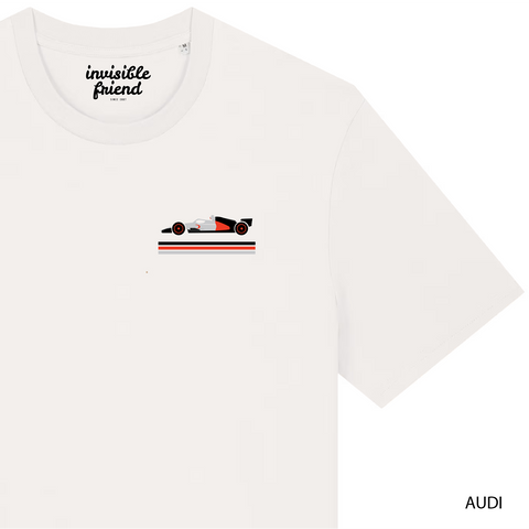 Stylish off white t-shirt depicting the cars of all eleven teams in the 2026 F1 Championship. Perfect Christmas or Birthday gifts for any F1 fan.